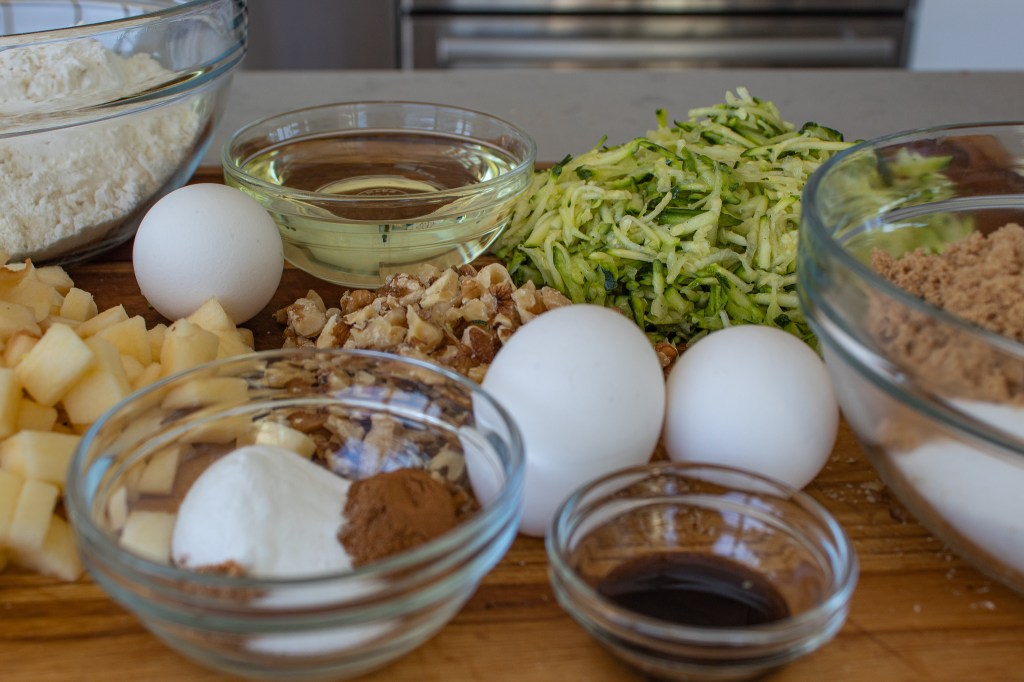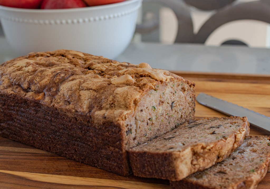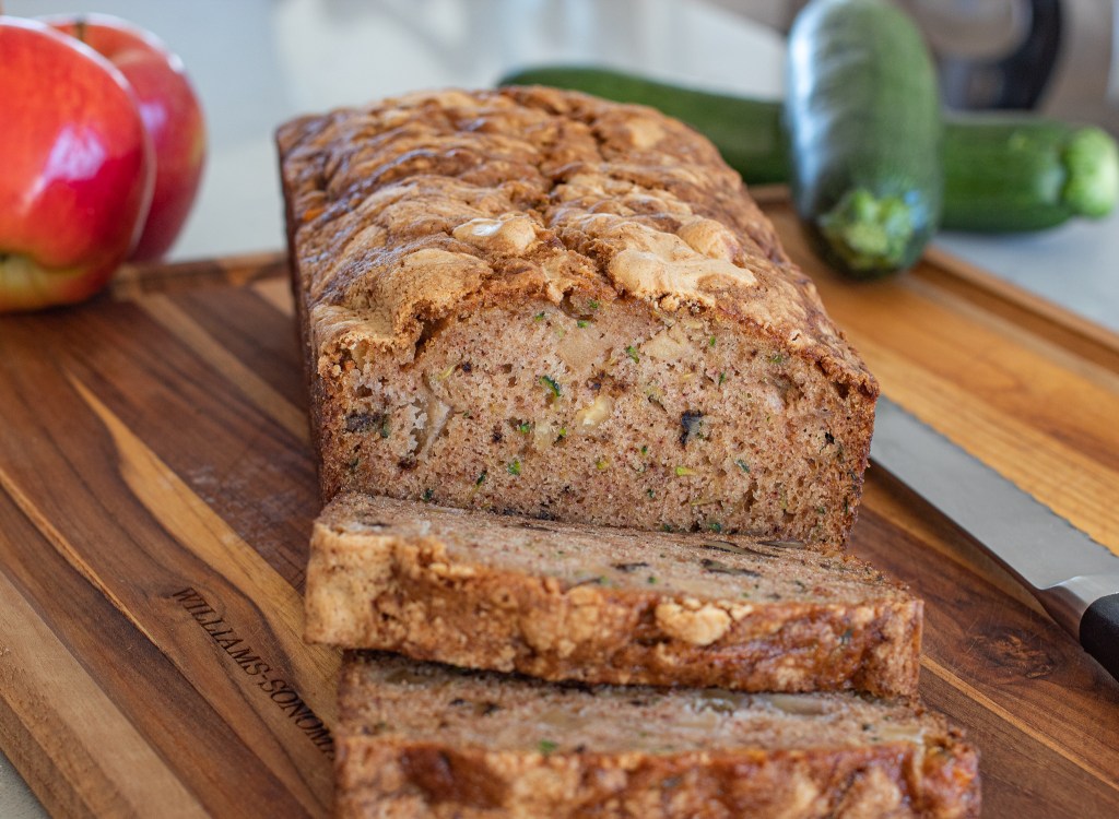Zucchini always makes this bread nice and moist, but the added apple chunks just brings it to a new level. There is a nice crispy crust on the top and the apples add extra bursts of sweetness along with a textural component.