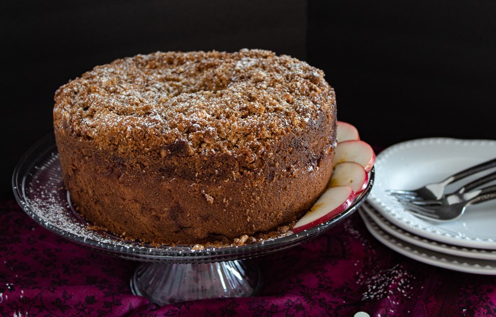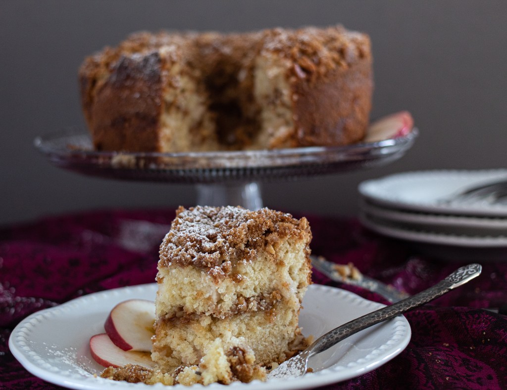 Who does not enjoy a great cup of hot coffee with a piece of decadent, sweet cake? Add some fresh apples, and you have the perfect fall cake to be served with Sunday brunch or an afternoon pick-me-up with a cup of tea.